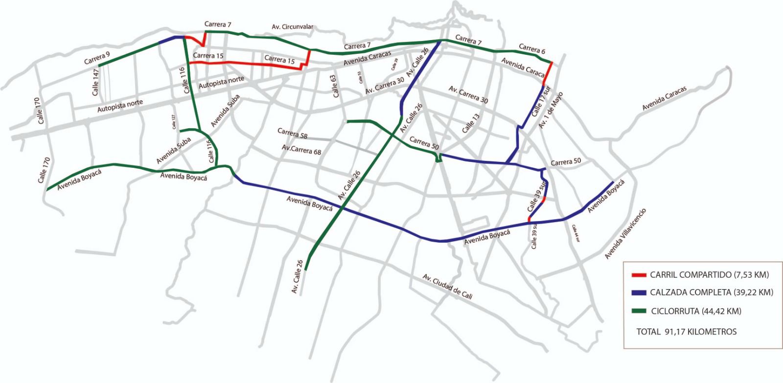 - 91.17 km de vías habilitadas (Ciclovía IDRD).