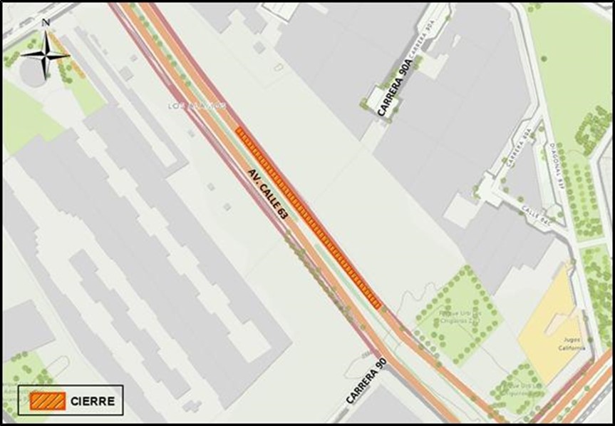 zonas de cesión del proyecto Centro Comercial y Empresarial Santa Mónica, la Secretaría Distrital de Movilidad (SDM) autorizó el PMT para el cierre de un carril de la calzada norte en etapas no simultaneas, de la Av. Calle 63 entre la Carrera 90 y Carrera 92 en sentido oriente-occidente así: (Mapa 1).