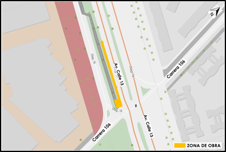 Bogotá, 04 de octubre de 2025. (@BogotaTransito). Con el fin de adelantar las actividades de mantenimiento en caja de válvula existente, por el método de excavación a cielo abierto en cumplimiento del contrato VANTI S.A. ESP 4600000774, la Secretaría Distrital de Movilidad (SDM) autorizó el PMT para cierre del carril sur de la calzada sur en el costado occidental de la intersección de la Av. Calle 13 por Carrera 106 en sentido occidente-oriente (mapa 1).
