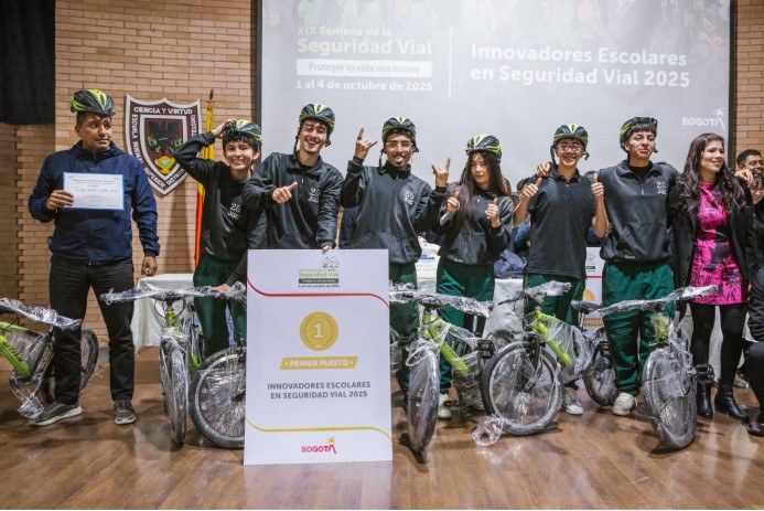 Bogotá, 3 de octubre de 2025. En una jornada que evidenció el potencial transformador de los jóvenes, se realizó la gran final del concurso Innovadores Escolares en Seguridad Vial - 2025: Aportando Juntos por una Movilidad Sostenible, Inclusiva, Eficiente y Segura, organizado por las secretarías de Educación y Movilidad, en cumplimiento del Acuerdo Distrital 650 de 2016.